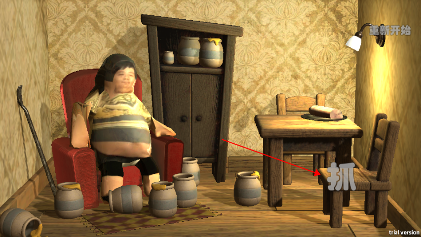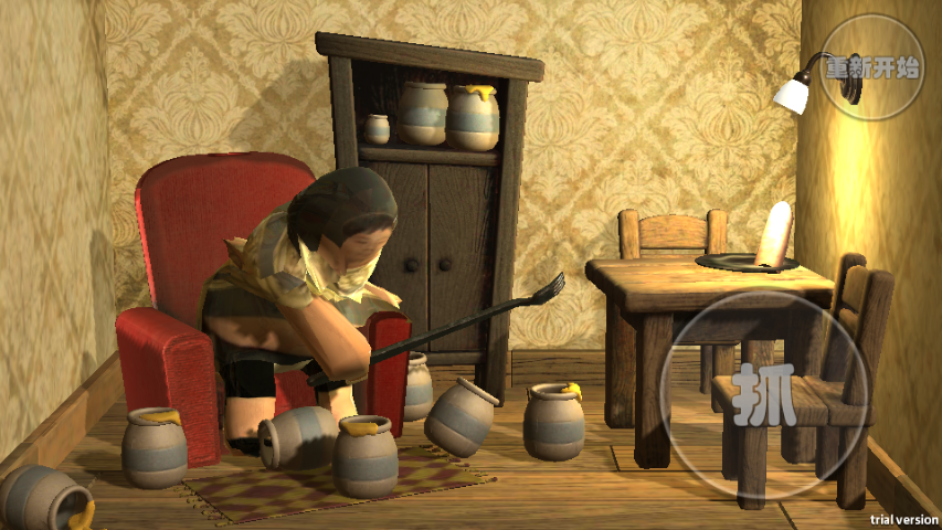 4、如果已经无法抓起铁棍了,你还可以点击重新开始。