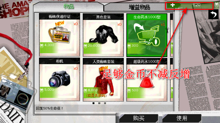 金币、技能点使用强加,需要收集到大于物品价格才可实现.