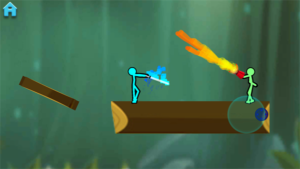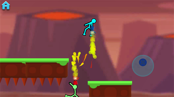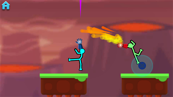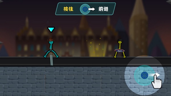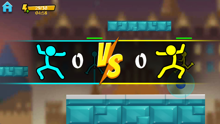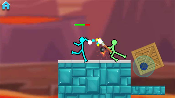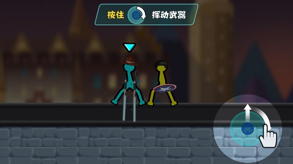 玩家在游戏中操控一个火柴人,利用简单的横版摇杆操作操控火柴人进行热血格斗。