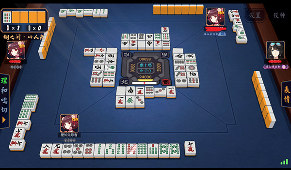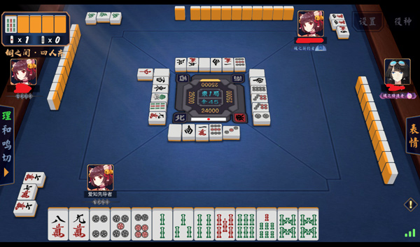 5、对战界面与雀龙门、世嘉mj没有太大差别。麻将牌字体沿用传统的日本麻将字体。轮到自己出牌时点击要打出的牌即可完成切牌动作。在可以吃、碰、杠的情况下点击自己牌上方的字即可完成动作。当然,没有“役”是不能胡的。此外《雀魂》与主流日本麻将规则统一步调,采用“食替×”的规则,不允许玩家“食替”。所谓的“食替”,即用两面搭子吃牌后,即刻打出可与两面搭子匹配为一组顺子的牌。在“食替×”这一规则下,45万吃3万后是不可以打出3万或6万的。