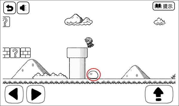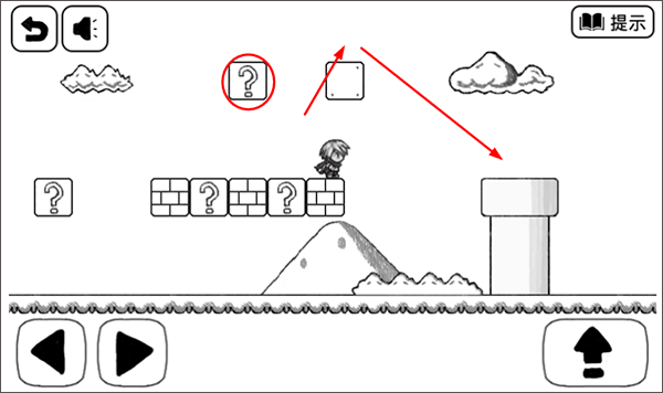 4、此处顶方块,出现提示方块,站在提示方块上跳过大坑,因此坑实在是太大啦,直接跳是过不去的啦。
