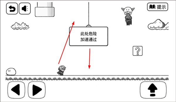 1、本关先按住主角向左滑动,即可让主角转向。