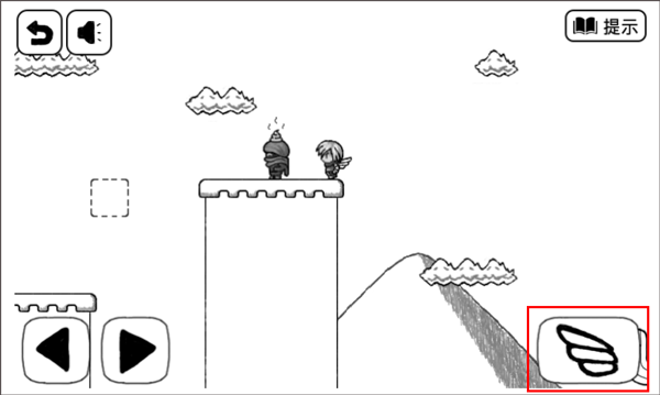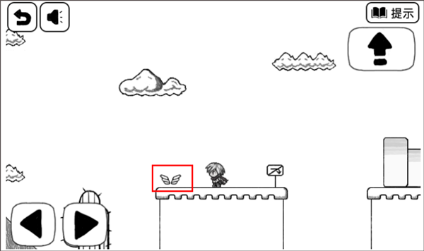 2、注意到跳跃按钮跑到右上角去啦,跳过去,取得翅膀。