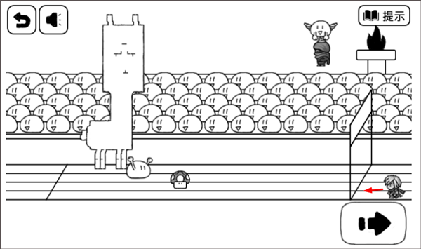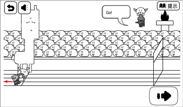 2、转向后不停的点按前进按钮,即可快速到达终点,成功过关。