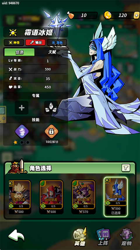 冰姬(T0级),冻伤输出角色,以后可以搭配剑魔一起用,输出C盲目拉。