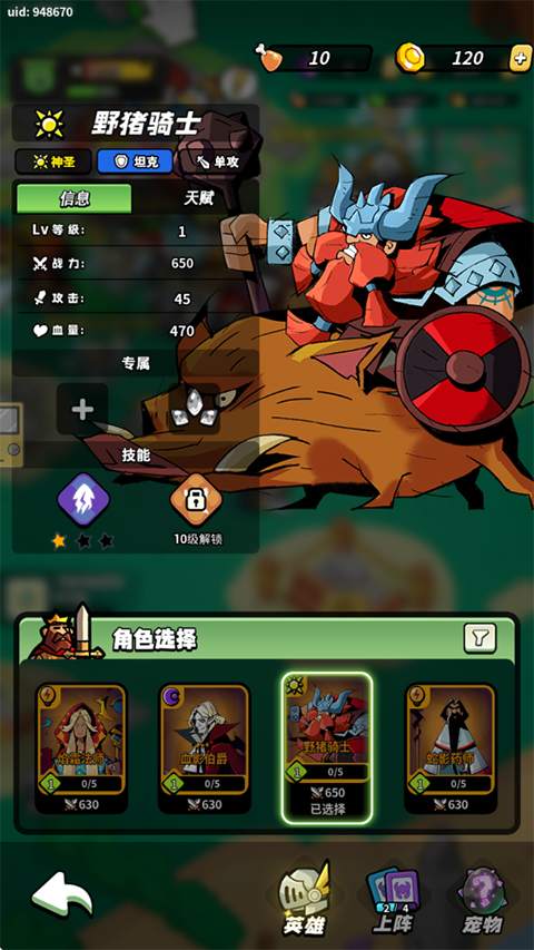 野猪:如果养最少30起步,纹章也拉起来,靠它抗。