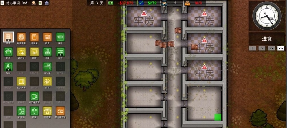 5、木工没人上课的问题,因为木工是高级技能,要先pass工作间才能学,普通教育同理;要注意木工造出来的床是要手动卖的,移动也要工人影响效率,最好看着犯人做好马上手动卖,一张400。嫌麻烦的话只放电锯跟冲压机也行