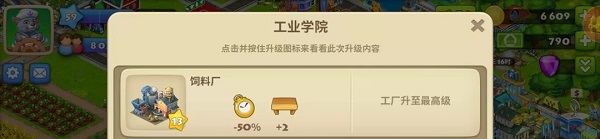 由于动物饲养场有13座需要饲料加工厂生产的饲料,而饲料加工厂最多只有3座,为了保证所有饲养的动物不饿肚子,还是把饲料加工厂等级升满吧,这样的做法只会给你带来好处,而不是抱怨饲料不足的问题。