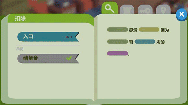 4、点击放大镜,可以更仔细地观察角色和环境,发掘隐藏的线索,助你更快锁定嫌疑人;