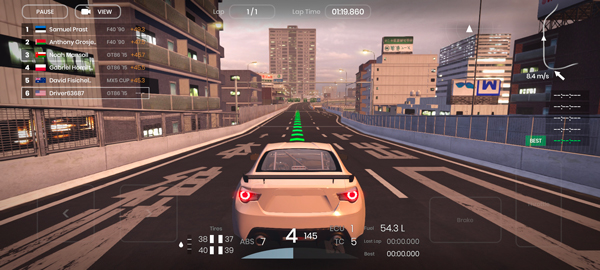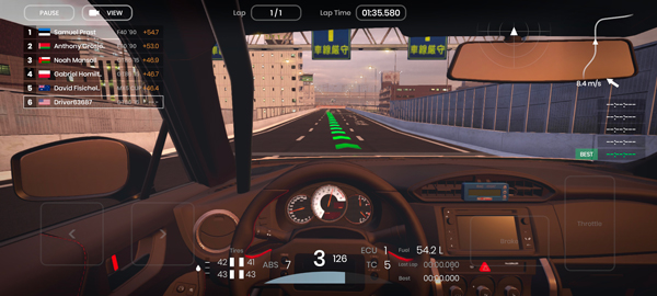 5、游戏采用横版操作,左边方向键控制赛车左右,右边则为刹车和油门;