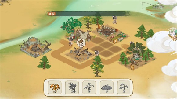 1、进入华夏绘世录游戏后点击地块上方的建造按钮来修建不同的建筑。