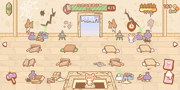 2、解锁员工室需要500金币以及一颗星星,解锁后员工室后,当员工一次处理多个订单之后,员工就会到员工室休息,此时就可以完成与员工在员工室对话的任务了