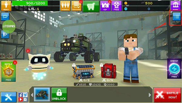2、游戏商店中可以购买到各类战车组建,包括方形模块、三角模块、舱口甲板、车轮、炮塔、盾牌、涡轮机、尾翼等等,你可以发挥自己的创意,自由搭配组合,打造你专属的无敌战车。