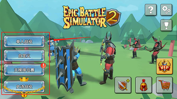 1、进入游戏,在主界面有单人战役、自定义、天梯排位赛和史诗战役四种模式,其中史诗战役是需要通过单人战役第50关才可以解锁的,小编这里以单人战役模式给大家大致介绍一下游戏玩法