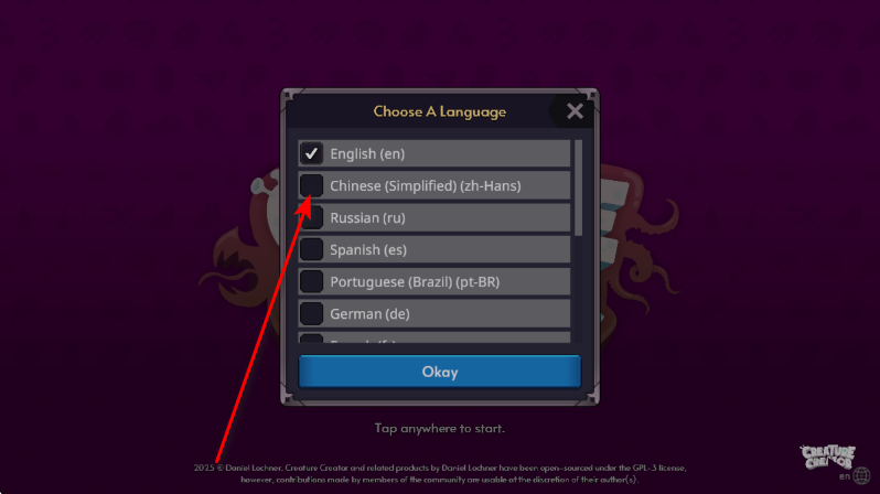 1、进入游戏游戏在初始界面点击右下角的地球;