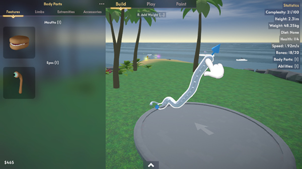 2、初始玩家只是个类似胶囊的细胞,操作轮盘移动拾取其它部位道具,记住避免被其它生物吃掉。