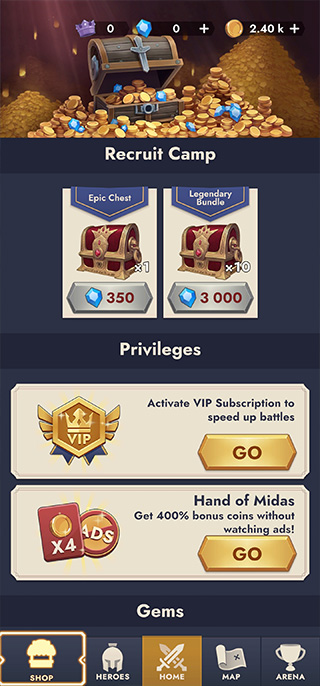 2、进入游戏后,点击shop,你将进入商城,各种神奇道具等你来挑选,助力你更轻松地征服世界。