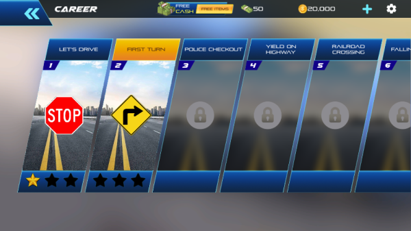 2、选择驾驶关卡,每一个关卡都能够让你学习到有关驾驶和道路安全所需的知识。