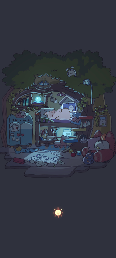 2、进入游戏如图,玩家扮演的猫将在家中醒来,点击下方地图按钮;