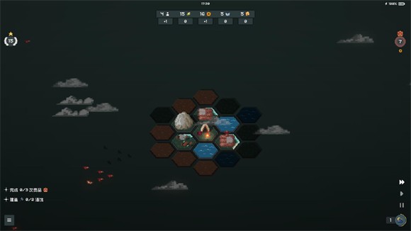 4、正式开始后点击一个区域来建造不同的建造,每次建造都会消耗资源。