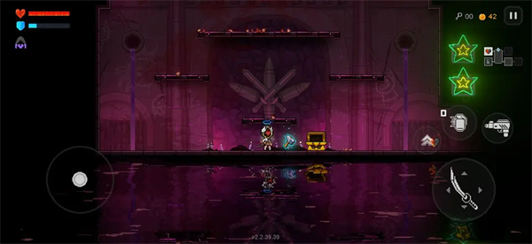 第一种挑战房看右边墙壁上面的绿色星星,星星为两颗,如果玩家无伤通过,星星则为两颗绿色的星星,掉落金色的宝箱。金色宝箱当中必开出升级武器的相关道具,如下图
