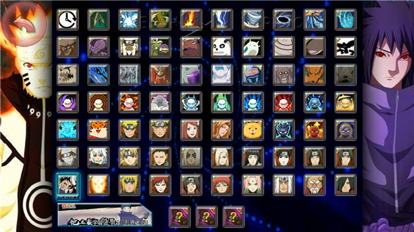 4、选择完人物之后就要选择召唤技能了,在这里你可以选择尾兽技能、卷轴技能、或者角色技能;