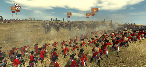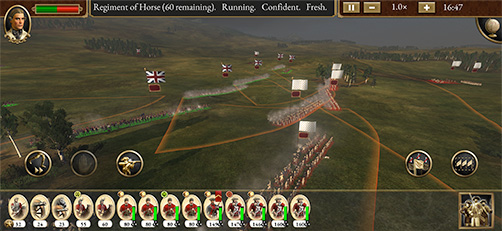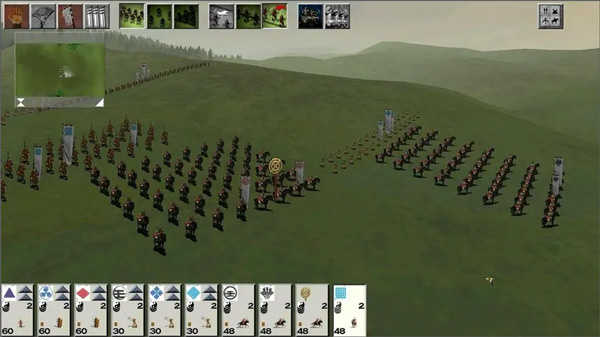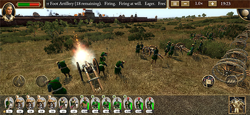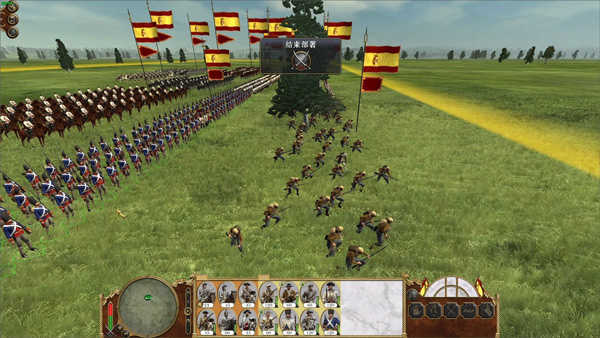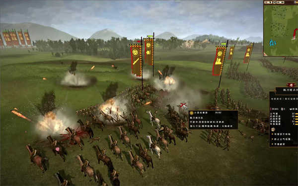 火炮的射角是很低的,也是一个新人容易吃亏的地方,将火炮放在部队后面在2支部队对射的时候给予支援多半死部队你自己人还多一点,非要这么做那么火炮离开步兵线的距离就要拉开,但是这样如果你没有骑兵的话很容易被对手照顾到。所以一般情况下火炮就放第一列吧,在敌方移动的时候就尽情的蹂躏吧!