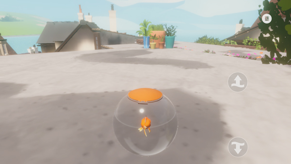 6、进入游戏后,玩家控制的小鱼在一个透明球体鱼缸内;