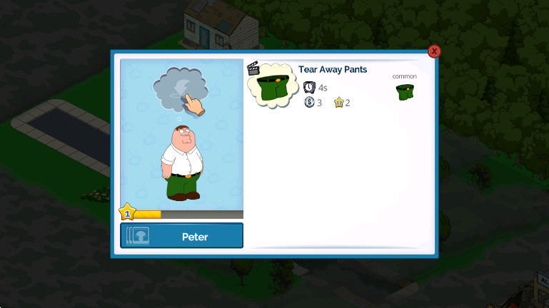 3、游戏过程中,玩家还可以解锁很多有趣的服装为你的角色打扮一番,像美人鱼彼得,身穿比基尼的Quagmire,兰博版洛伊丝等;