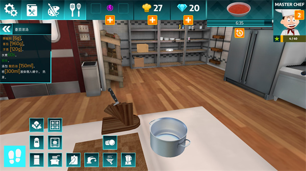3、其制作的过程可谓十分真实,几乎都应用了真实的物理原理,举几个例子,像是切菜需要按照要求进行等份质量的切取,像是煎肉一段时间后需要拿着铲子进行翻面,像是给食物上调味料需要对准对应的位置等;