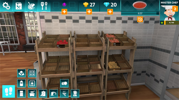 1、厨房准备,玩家可以提前购买好所需要的调料以及食物等日常原料,或者检查厨具是否有损坏需要打电话请师傅来修理等;