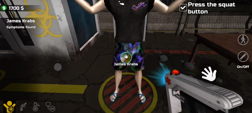 1.在入口处逐一审查排队者,点击其身体部位检查症状,如伤口、体温或呼吸频率,收集诊断信息。