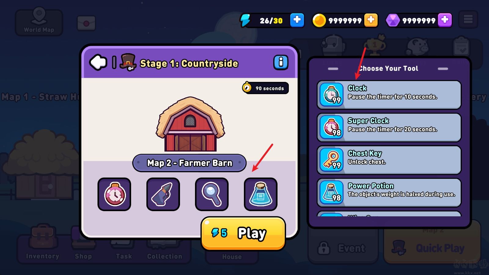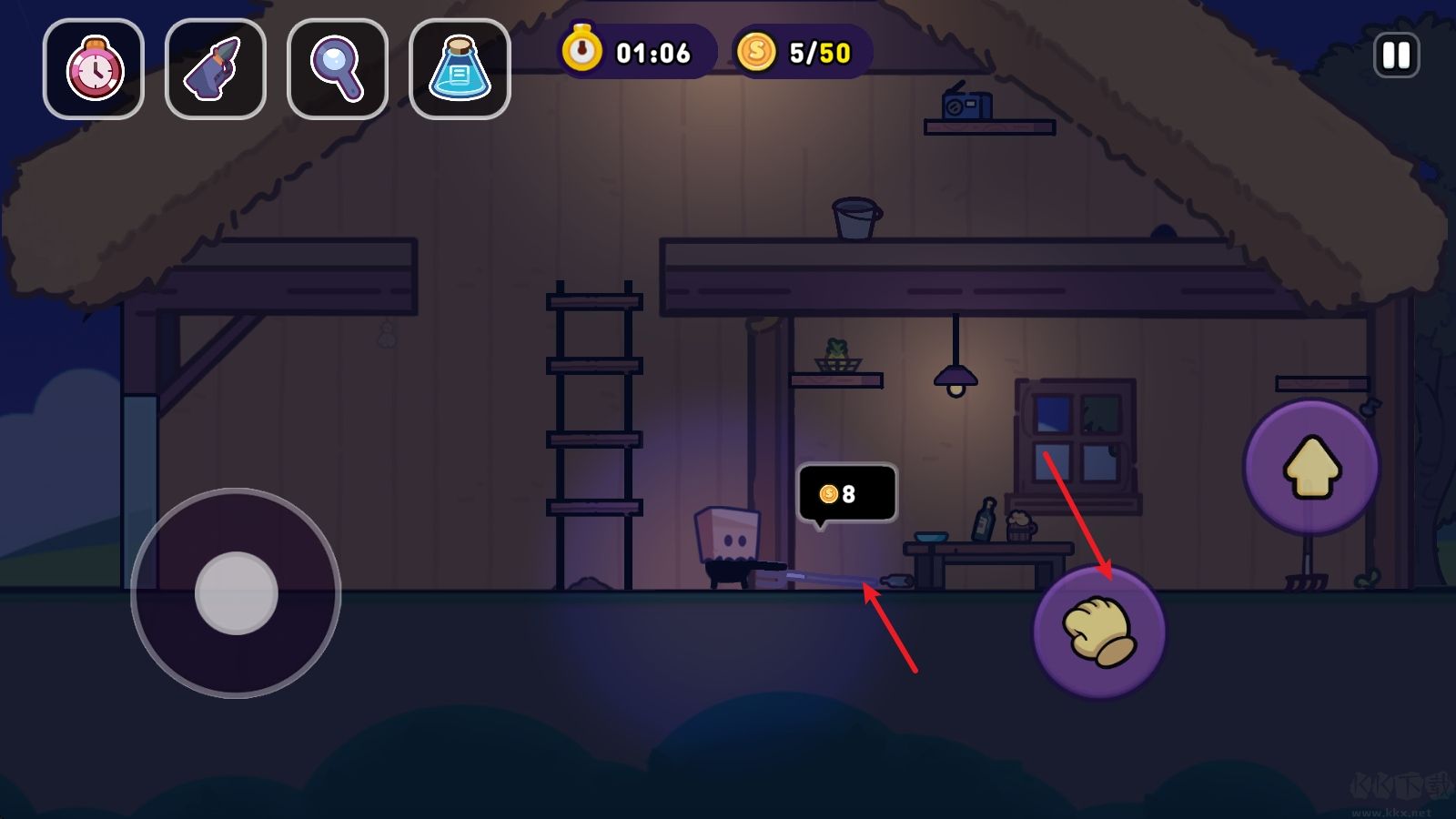 5、过程中能使用各种道具,帮助自己收集更多物品。