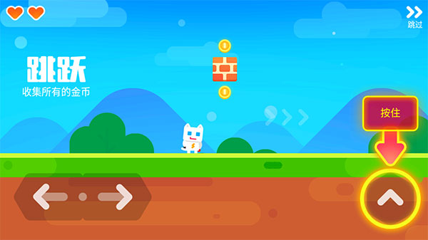 2、点击跳跃可以收集上空的金币,也可以破环障碍物;