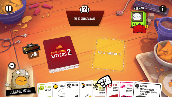 爆炸小猫2是一款轻松又带点疯狂的策略卡牌手游,是爆笑派对游戏爆炸小猫的全新续作。玩家将与好友或全球对手展开脑洞大战,通过出牌、陷害、反转与运气的巧妙结合,努力避免抽到那只“爆炸小猫”。相比前作,本作新增更多趣味卡牌、特殊技能与对战模式,让策略性与娱乐性全面升级。