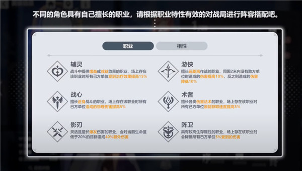 2、目前游戏有六种职业,需要根据职业特效来进行阵容搭配。