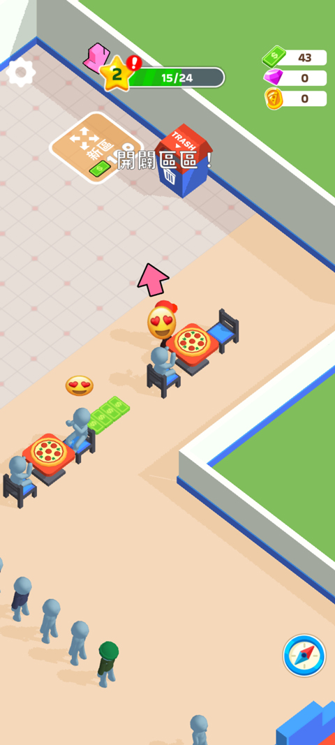 2、接着使用钞票购买解锁桌子、披萨制造机、收银台,然后等待顾客购买;