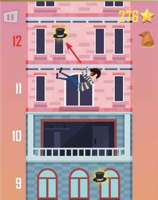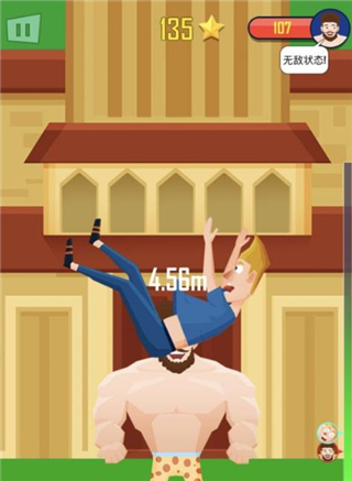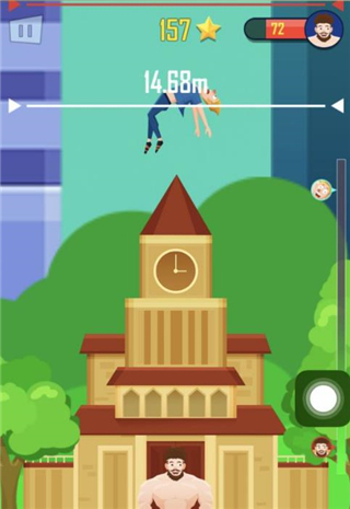 3、抛出人物会飞到空中,人物抛得越高得分就越高。抛出人物后在将要落地时再次点击屏幕,可以将游戏人物再次抛出。累计抛出的越高,得分就越高