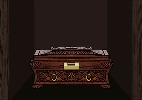 消除两波等重量砝码(9和3、6;7和2、5,随便都可以),出现一个鬼脸穿的戏服与它颜色一样才可以,不然直接死亡(这里我一直选的都是绿戏服,不过鬼脸红绿都出现过,看运气了),用钥匙打开盒子,获得贡品清单2。