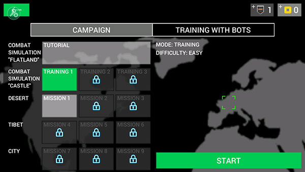 2、在单人模式中,选择要挑战的关卡后点击右下角的START即可开始,这里我们以TRAINING 1为例;