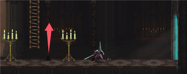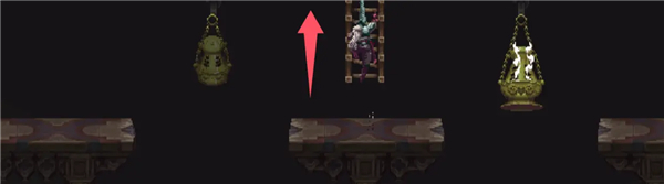 进入一个巨大的房间,先往右走,从房间右侧的梯子爬上去。
