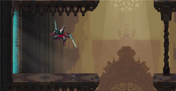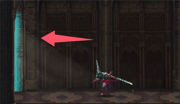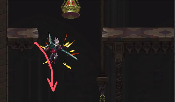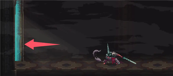 落下来后会发现右边的柱子下面有缝隙,可以滑铲穿过。