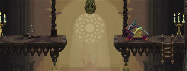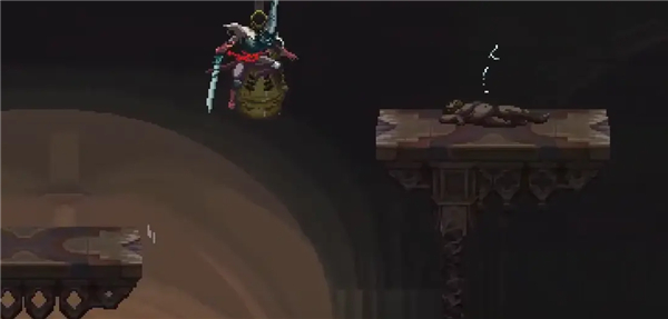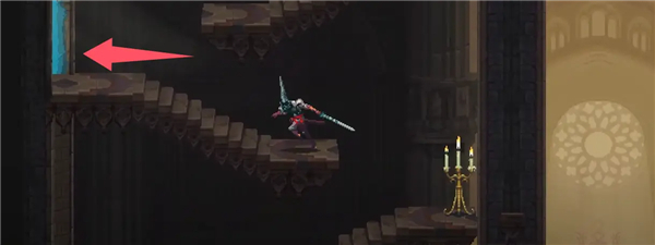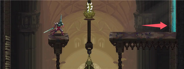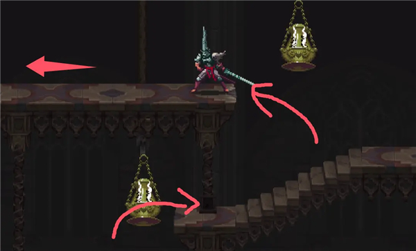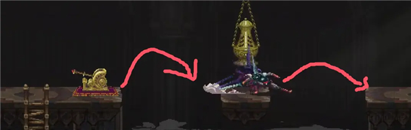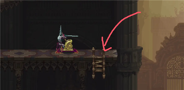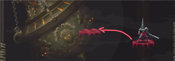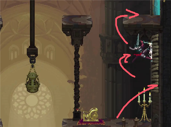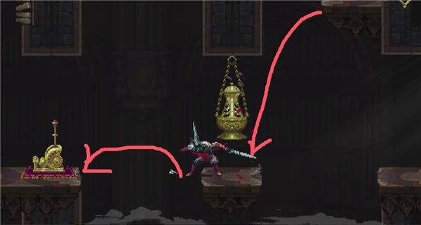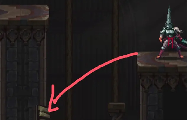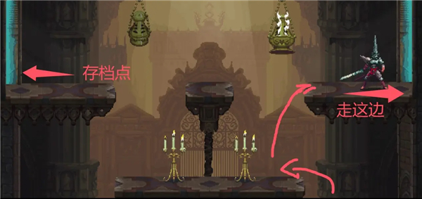 ②跳到香炉下面的平台上,然后跳去左边,开启回存档点的捷径。如果血量不够就回去存个档,但还是要回到捷径这里。