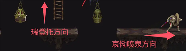 走到最顶层后,先向右走,去哀恸喷泉。