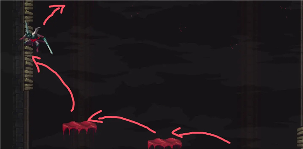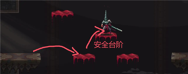 ③向右跳下来,启动回存档点的捷径。