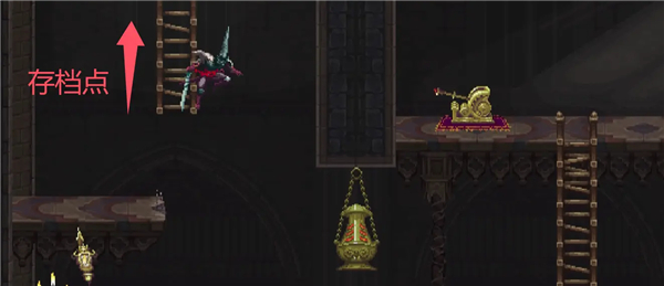 从梯子爬到下面一个平台后,走到左边再往上爬,可以去大教堂屋顶的存档点。