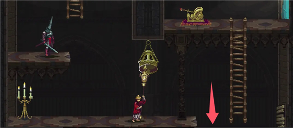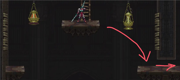 回到大厅,走两个平台然后跳下来。