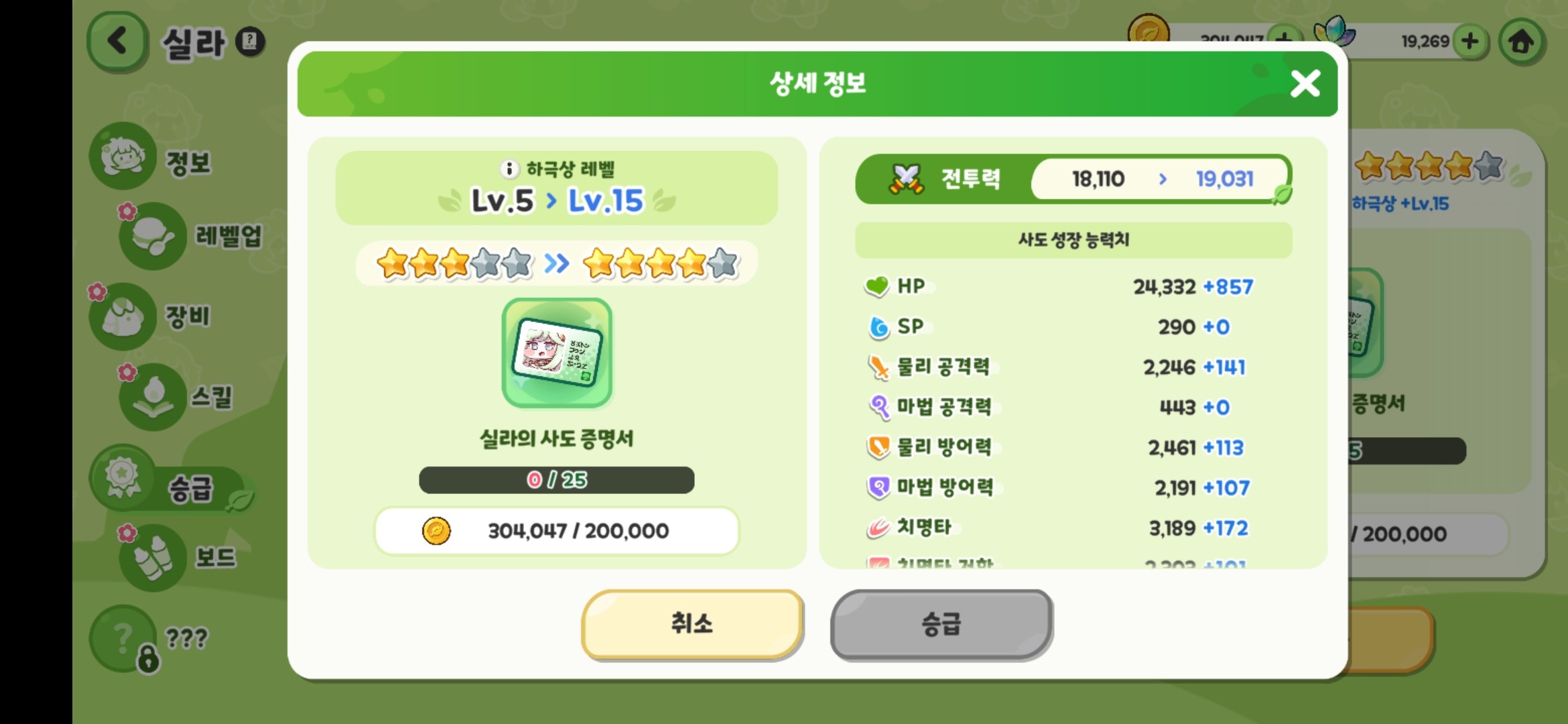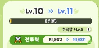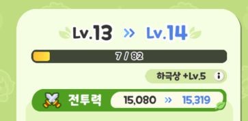 可以看到,无论是76-77的猫猫,还是16-17的玩偶,升一级的战力提升都是差不多的,可以推断出角色升级给的数值基本是恒定的,没有你的等级越高升级给的数值就越多这种情况。是最基础的一种提升战力的方法。