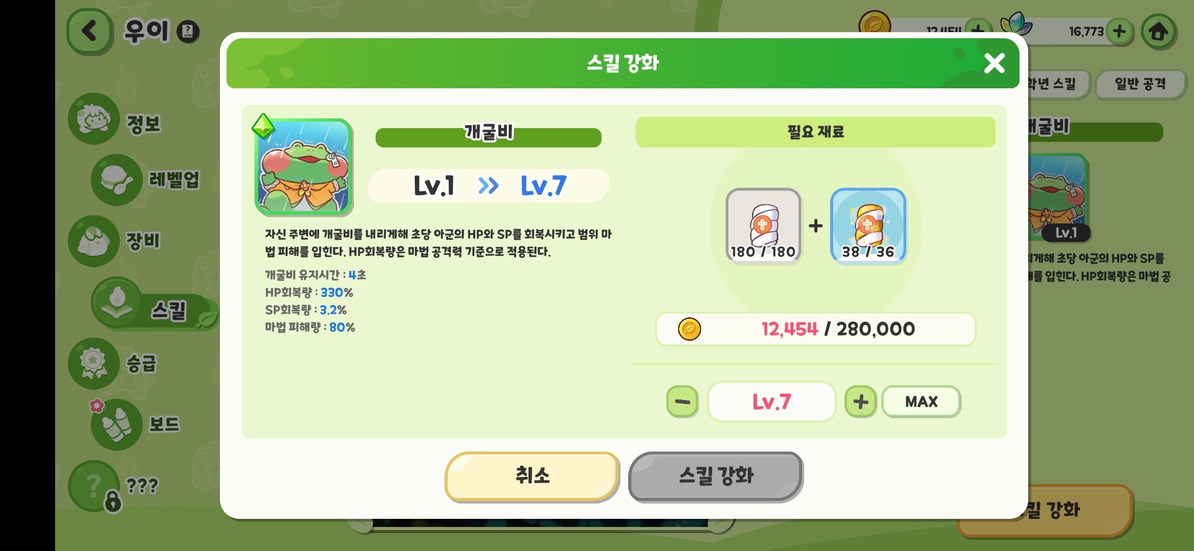 蛙蛙技能升7级只需要这么点资源