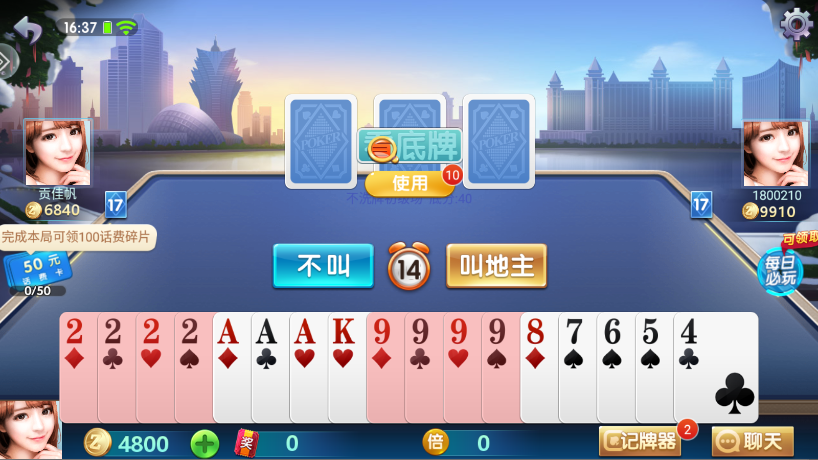 5.点击不叫或者叫地主,接着按照提示玩就好了。